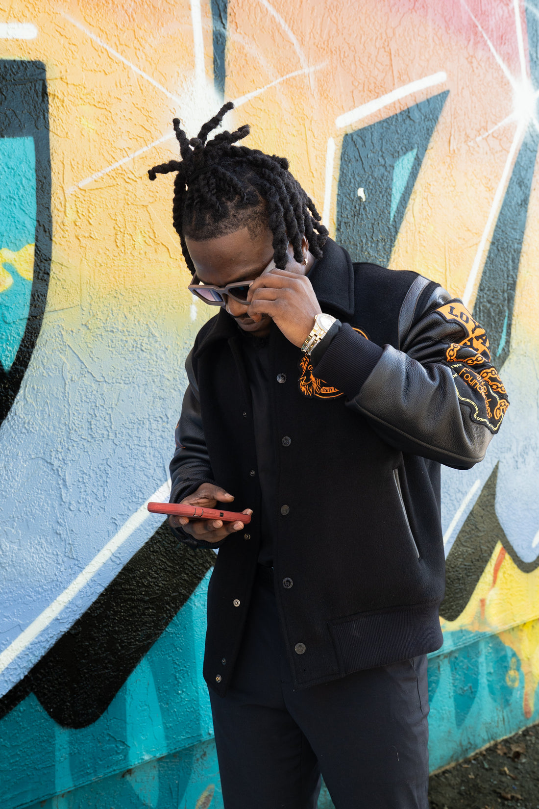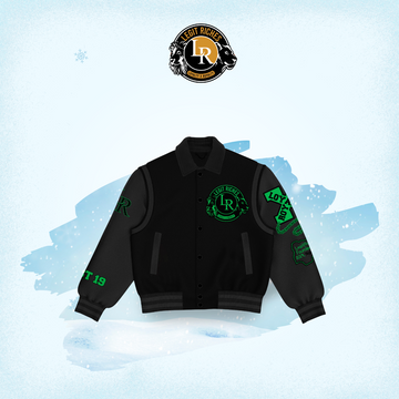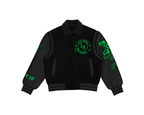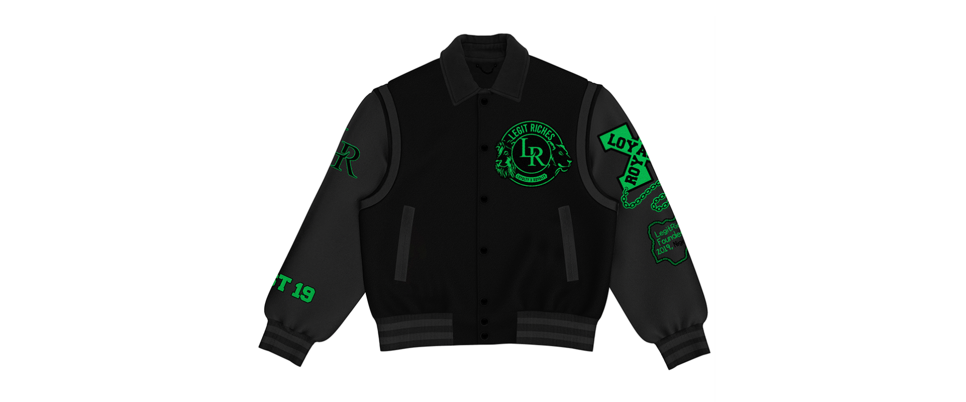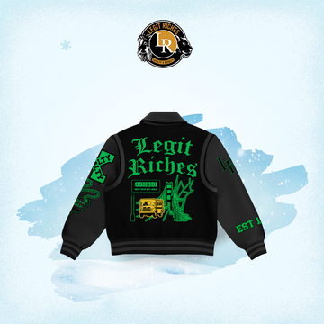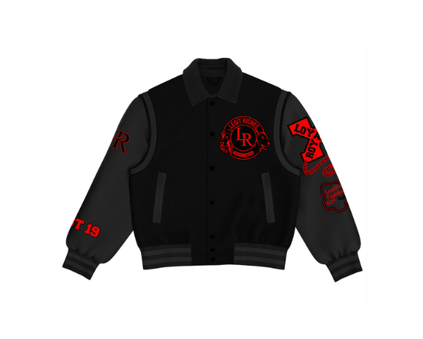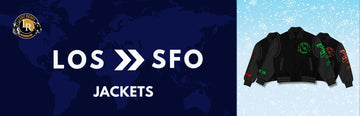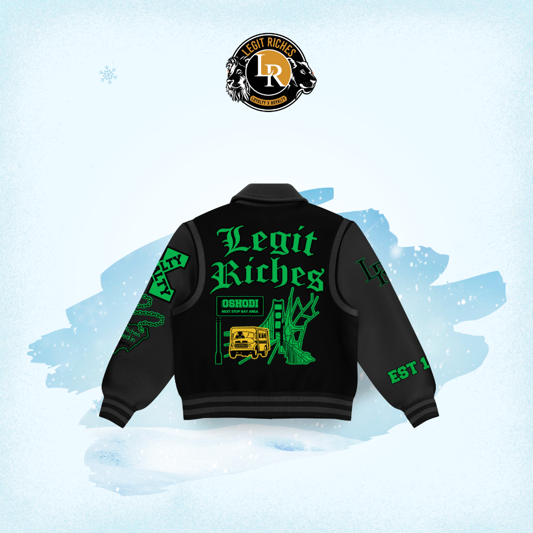 LOS -> SFO varsity jacket Wool blend with cow-hide leather fill and quilted satin linen...