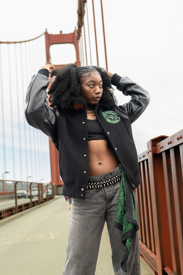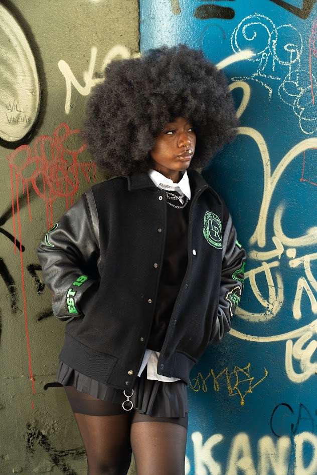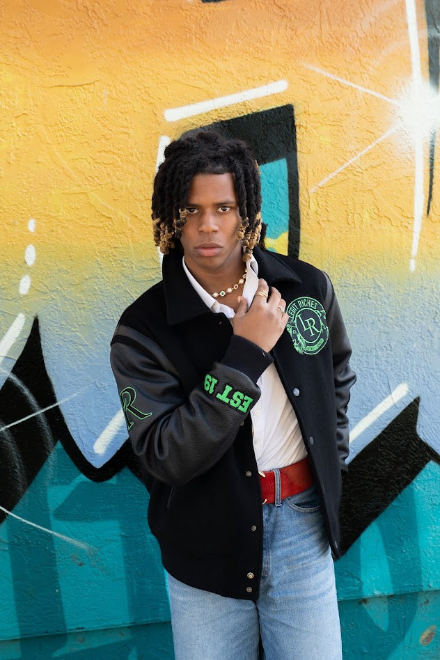 This varsity jacket features a heavyweight 100% wool body, genuine leather sleeves, and our signature Legit Riches® detailing. Built for structure, durability, and everyday luxury.