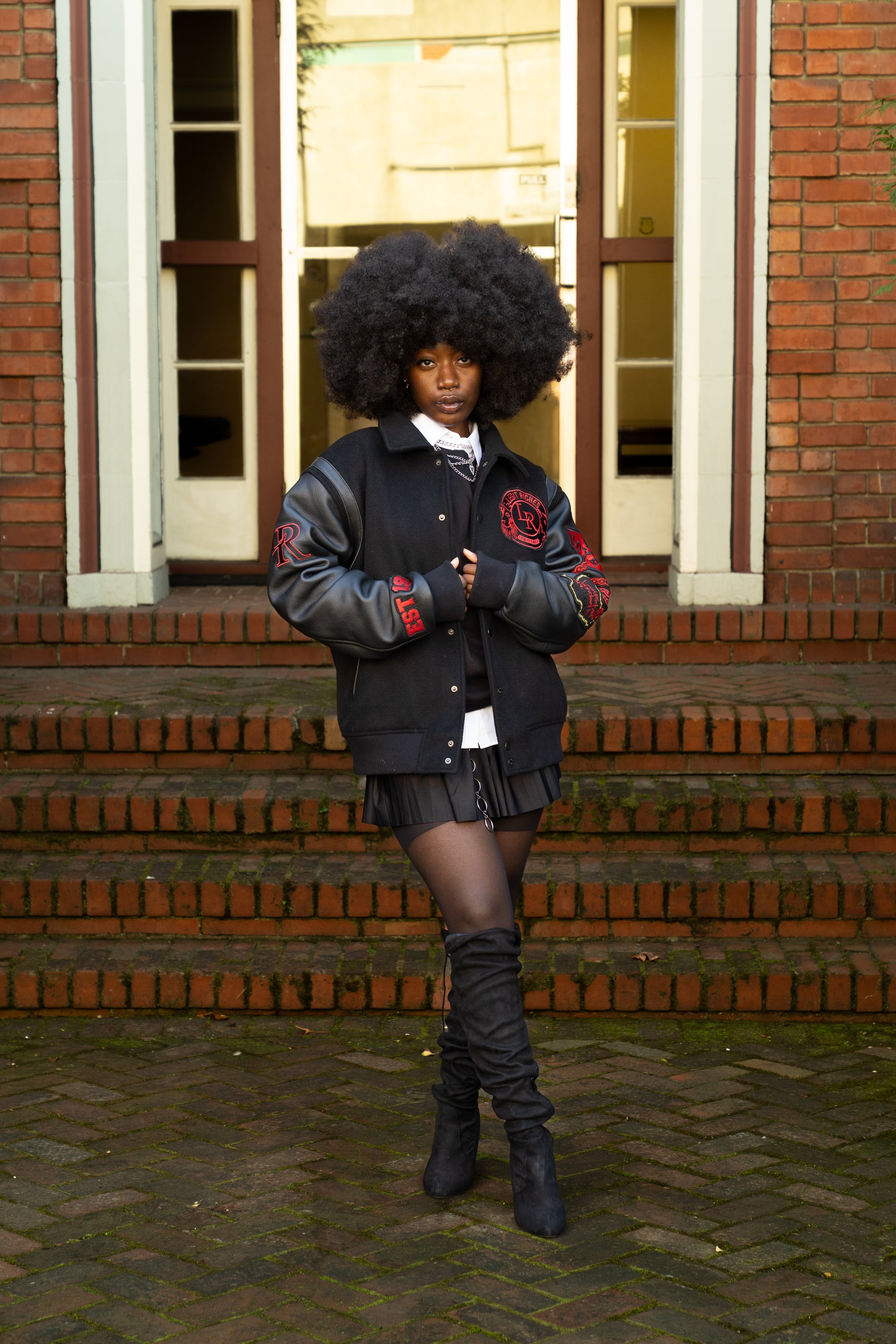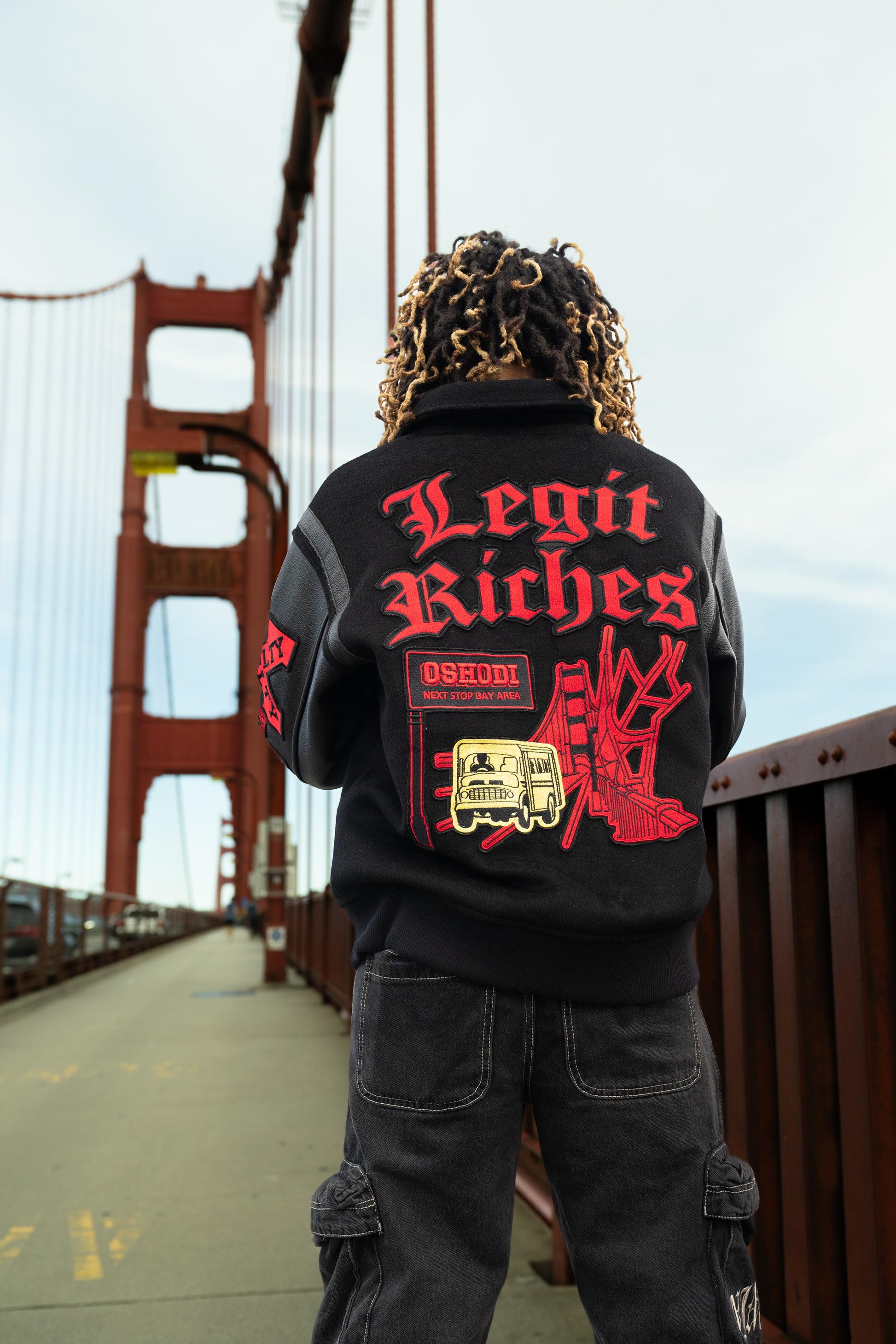 This varsity jacket features a heavyweight 100% wool body, genuine leather sleeves, and our signature Legit Riches® detailing. Built for structure, durability, and everyday luxury.